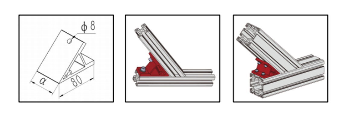 Hjem / Produkter / MK T slot aluminiumsprofilsystemer / T slotstik / 45 ° aluminiumsekstruderingsbeslag